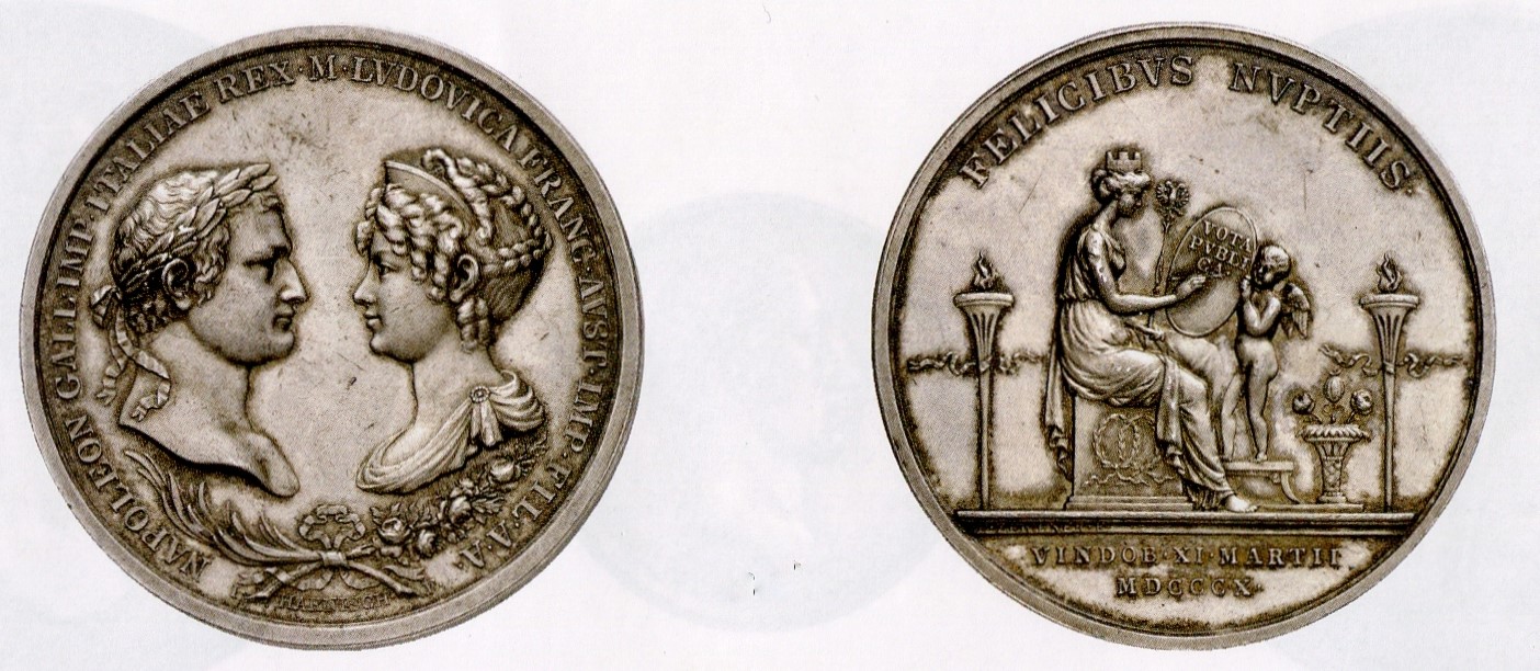 Der Erlass des Code civil wird auf der undatierten Medaille gefeiert. Als der Kaiser der Franzosen 1810 die Tochter von Kaiser Franz I. von Österreich heiratete, stand er auf dem Höhepunkt seiner Macht.