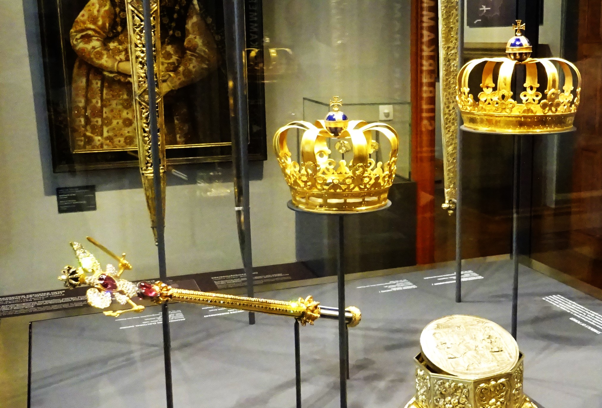 Friedrich III. reichte sein kurfürstlicher Titel nicht aus, er wollte unbedingt König werden und setzte sich am 18. Januar 1701 in Königsberg die Königskrone auf, die im Schloss Charlottenburg ohne den Edelsteinbesatz gezeigt wird. Vor dem Palast steht als Bronzeabguss das von Andreas Schlüter geschaffene Denkmal des prunksüchtigen Herrschers.