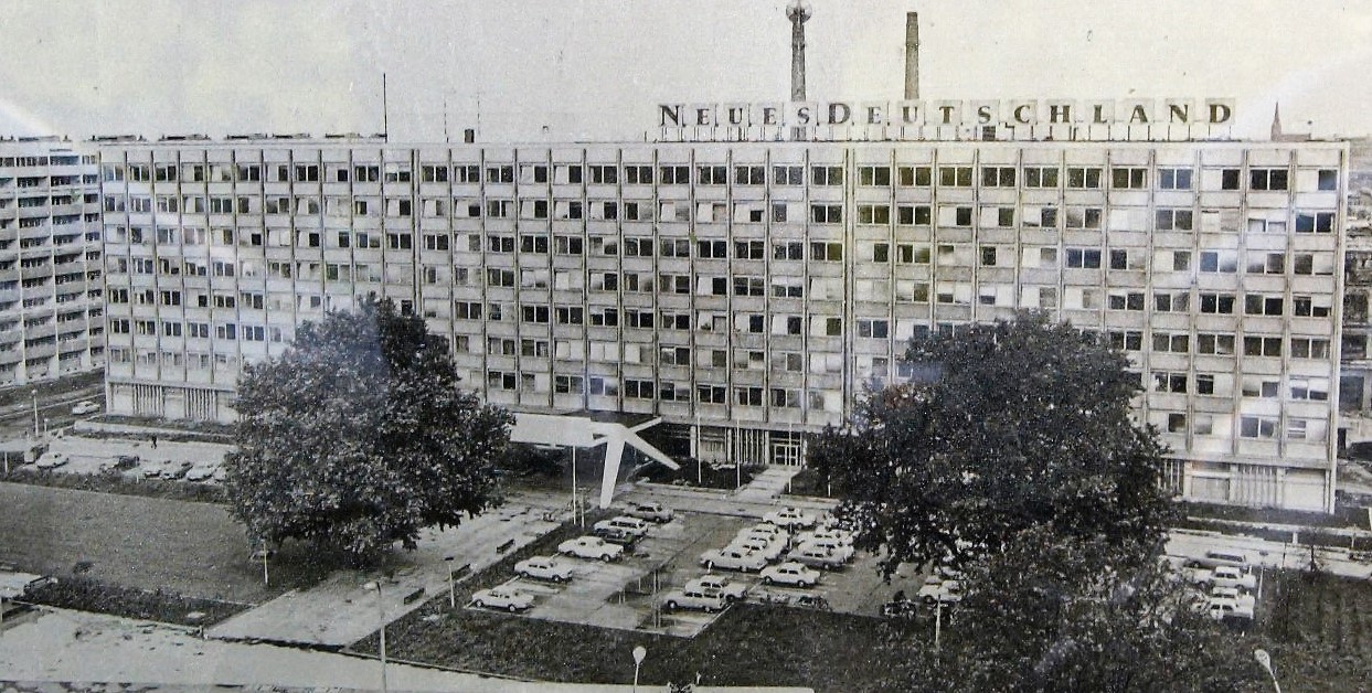Die im Neuen Deutschland – hier das Redaktions- und Verlagsgebäude am Franz-Mehring-Platz unweit des Ostbahnhofs – produzierte Blei- und Bilderwüste wurde von Journalisten und Lesern mehr oder minder offen mit Spott quittiert.