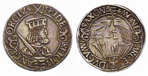 Von den ab 1500 ausgegeben sächsischen Klappmützentalern sind zahlreichen Versionen bekannt, was auf eine umfangreiche Prägung im Erzgebirge weist. Nach ihrem Vorbild haben die Grafen Schlick auf der böhmischen Seite des Erzgebirges in Sankt Joachimsthal die so genannten Joachimsthaler prägen lassen. Der Name wurde im Laufe des 16. Jahrhunderts zum Thaler oder Taler abgekürzt und lebt als Dollar bis heute fort.