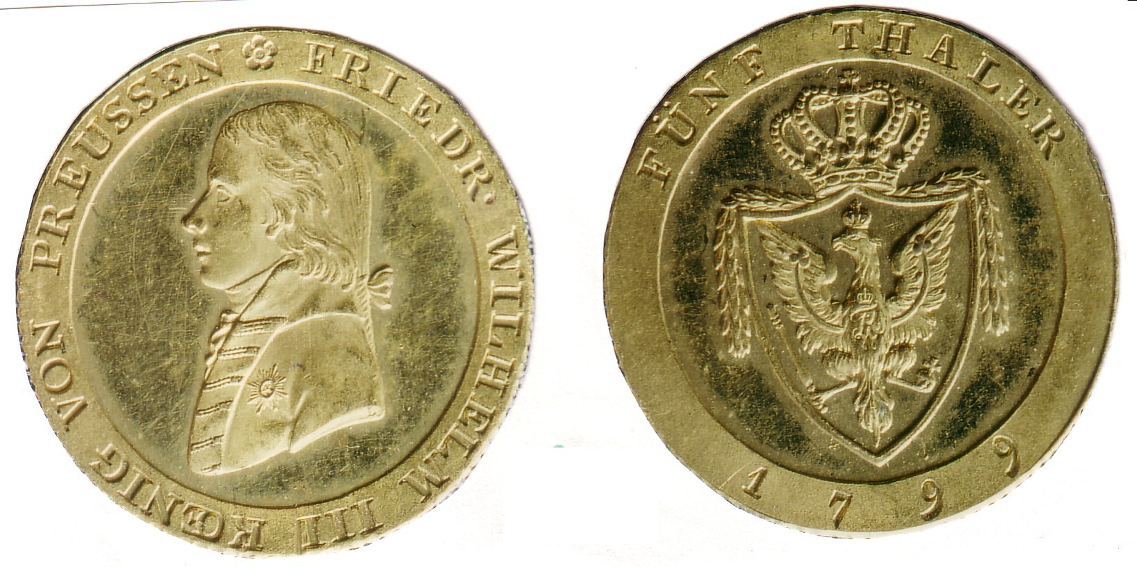 Auch die preußischen Fünf-Taler-Stücke auch Gold von 1799 waren numismatische Eintagsfliegen.