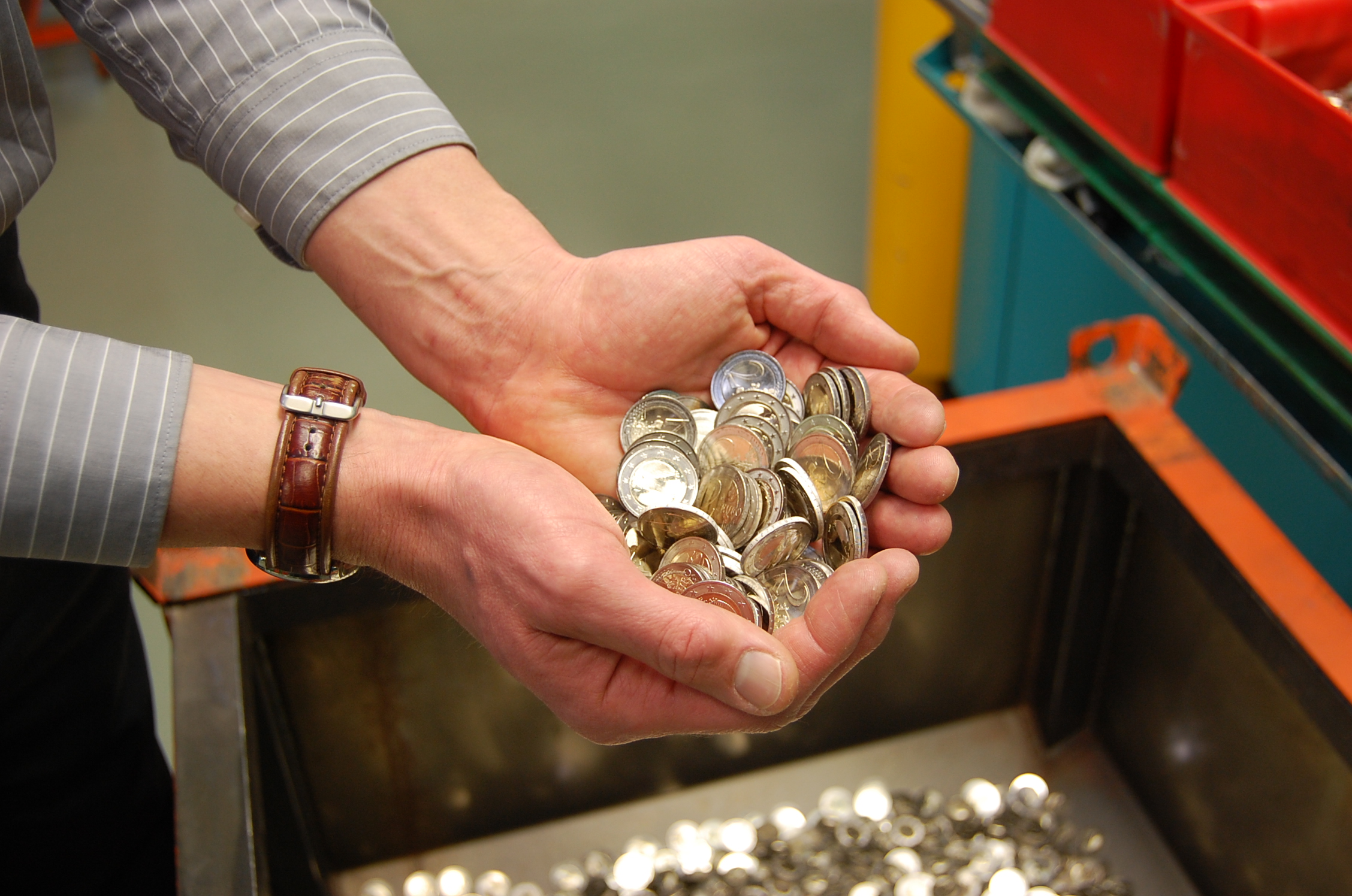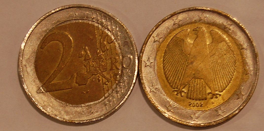 Ein- und Zwei-Euro-Münzen stellt wegen des Einsatzes unterschiedlicher Metalle