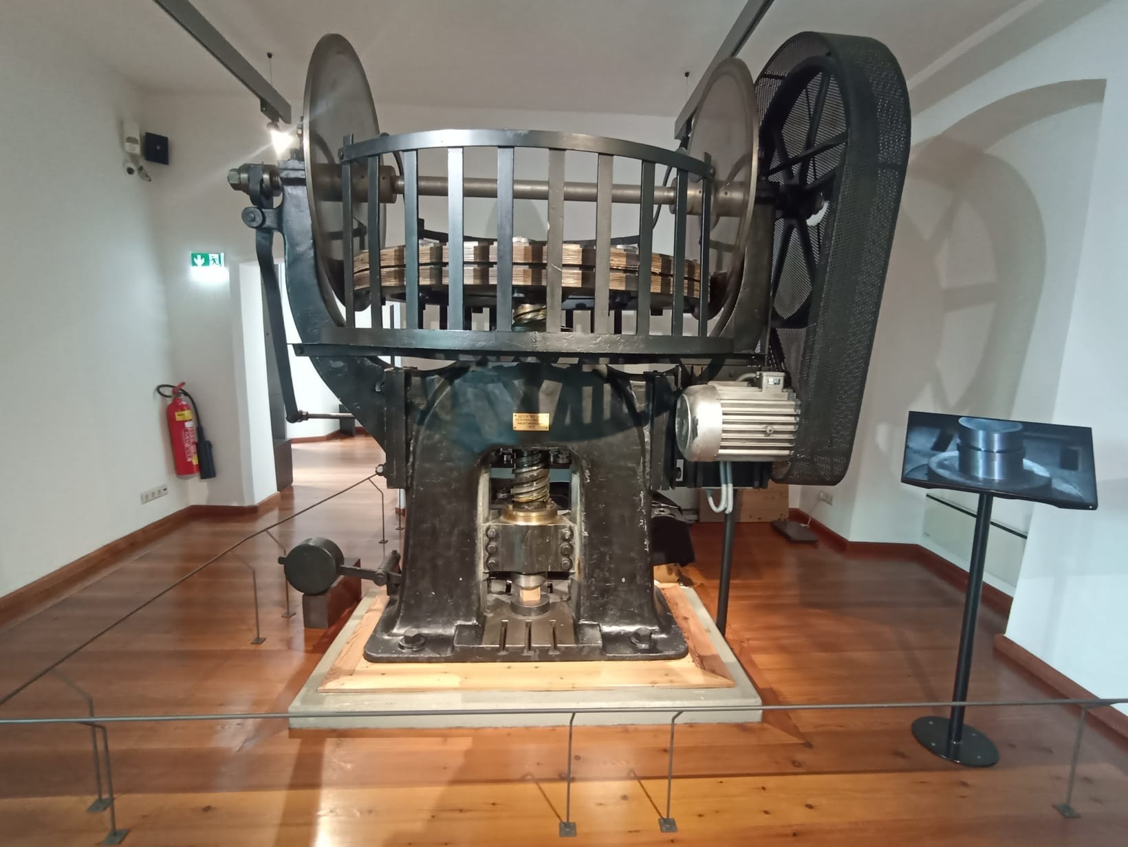 Wenige Schritte weiter steht eine mächtige Spindelpresse, mit der man auch Medaillen mit großem Durchmesser und hohem Relief fehlerfrei herstellen konnte.