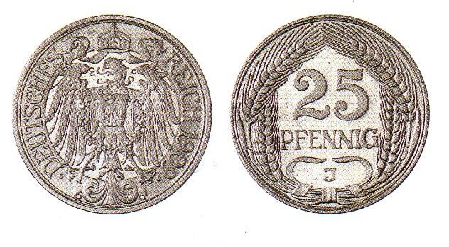 Um sich nicht auf wenig sachverständige Finanzbeamte verlassen zu müssen, wurde 1909 ein Preisausschreiben für ein vom Üblichen abweichendes Fünfundzwanzig-Pfennig-Stück veranstaltet. Was zahlreiche Künstler vorlegten, ist in Form von Probemünzen und Beschreibungen überliefert. Die eingereichten Münzbilder mit Adlern, Kronen, Pflanzen und anderen Motive fanden jedoch bei der Jury keine Gnade. Lediglich schaffte es ein „jugendstilig“ anmutendes 25-Pfennig-Stück in die Massenprägung, wurde aber von der Bevölkerung und dem Handel abgelehnt. Da es zu massenhafter Einschmelzung kam, sind die übrig gebliebenen Ausgaben heute gesuchte Raritäten.