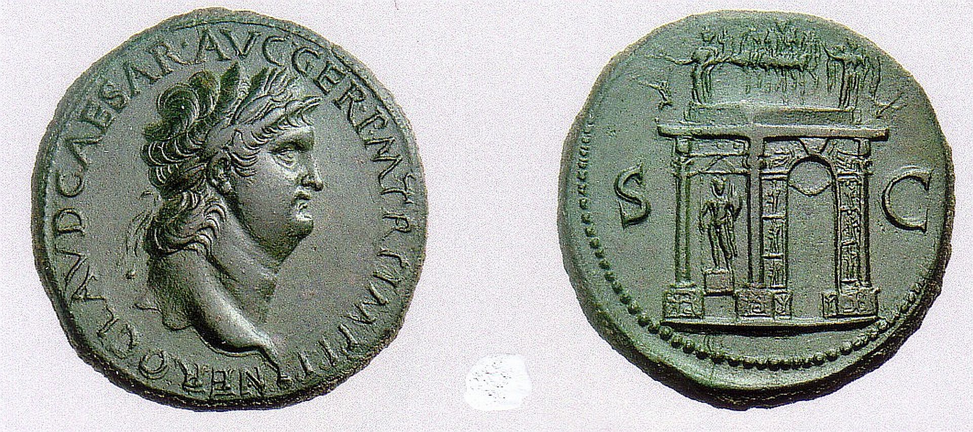 Die Patina auf diesem Sesterz des Kaisers Nero aus dem