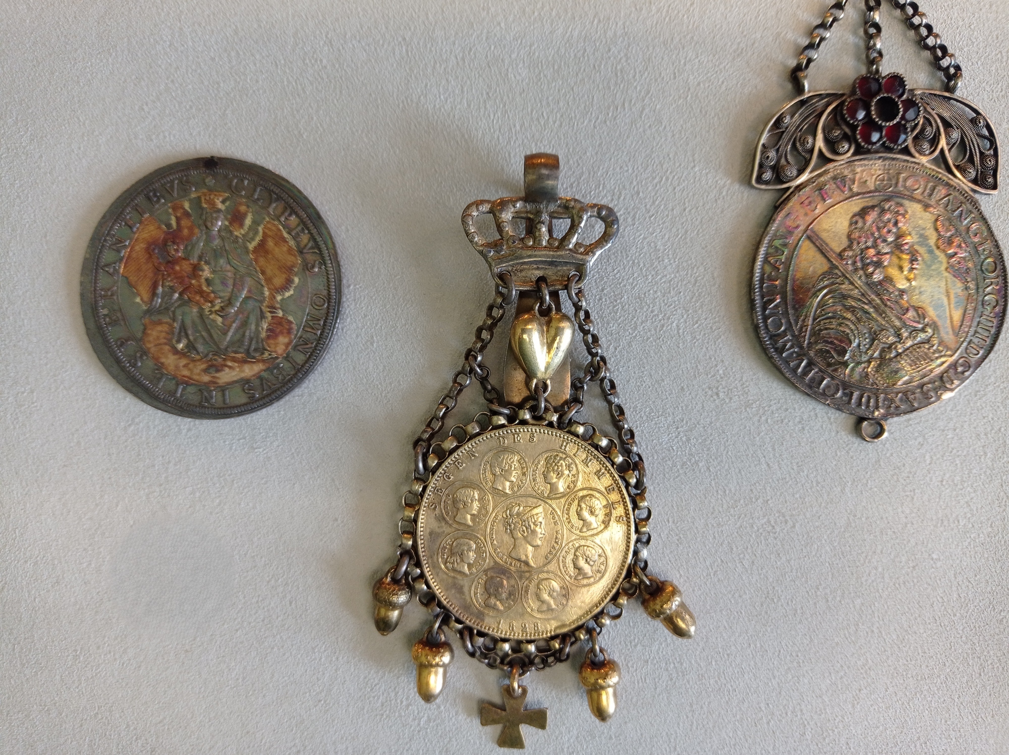 In der Ausstellung des Berliner Münzkabinetts im Bode-Museum kann man das numismatische Erbe aus zweieinhalb Jahrtausenden bewundern, hier ein bayerischer und ein sächsischer Taler, die für Halsschmuck verwendet wurden.