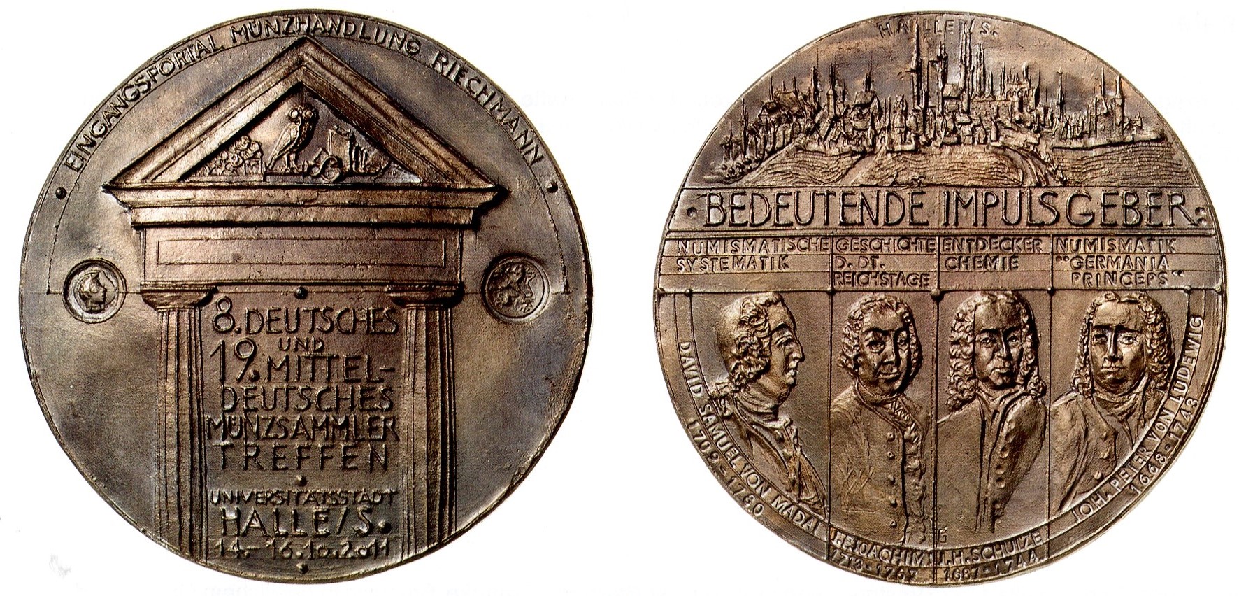 Die 2011 von Peter Götz Güttler geschaffene Medaille zum 8. Deutschen und 19. Mitteldeutschen Münzsammlertreffen in Halle zeigt das ehemalige Eingangsportal der Münzhandlung Riechmann in Halle und würdigt David Samuel von Madai, Johann Friedrich Joachim, Johann Heinrich Schulze und Johann Peter von Ludewig als bedeutende Impulsgeber der Numismatik und Geschichtsforschung.