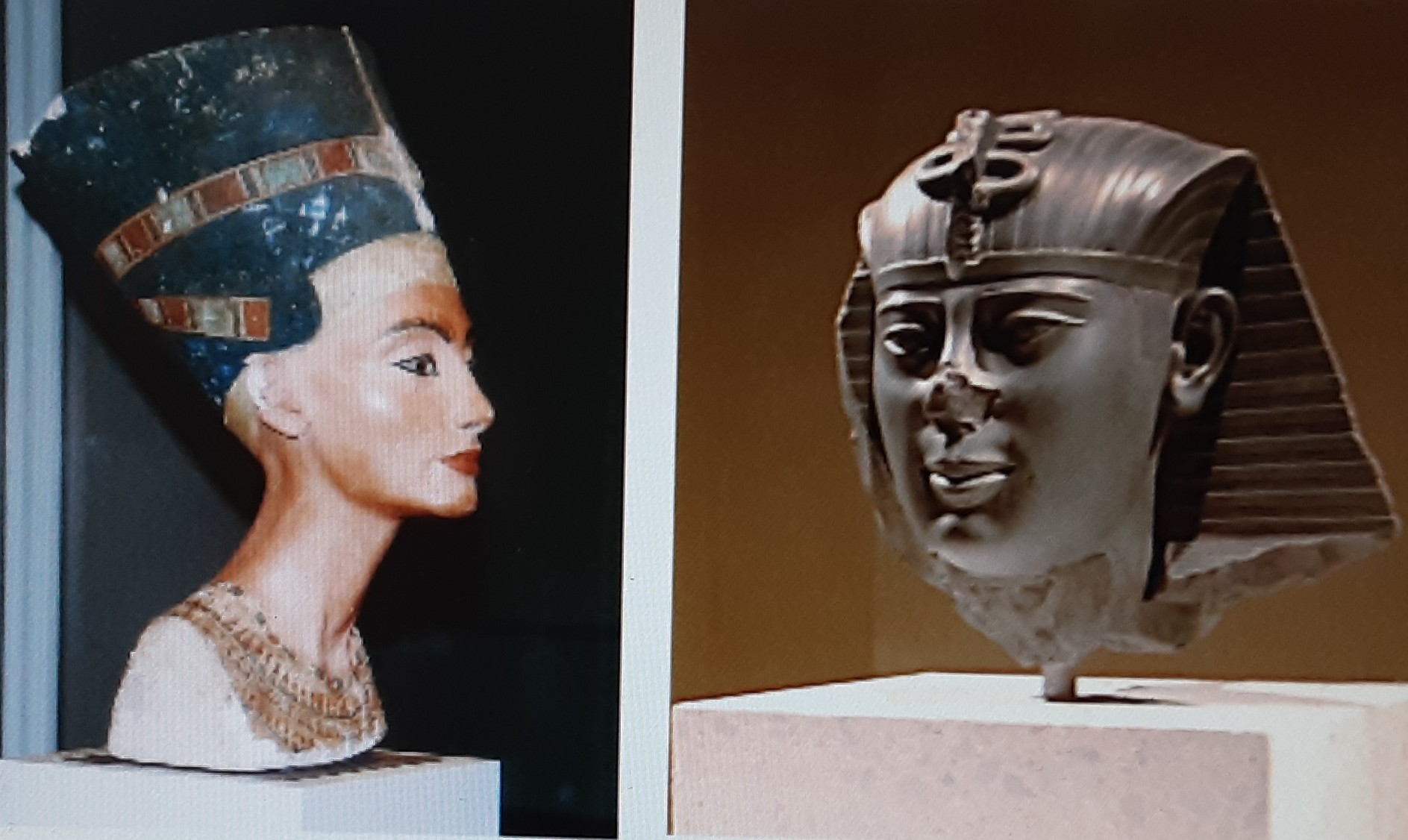 Das Porträt von Nofretete besteht aus Kalkstein mit einem bunt und lebensecht bemalten Überzug aus Gips, der bis auf einige Beschädigungen gut erhalten ist. Die Verstümmelung von Pharaonenköpfen hatte politische und religiöse Gründe.