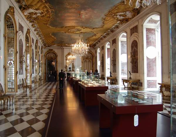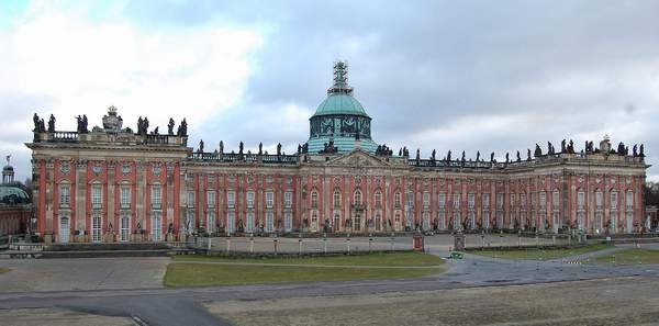 Wichtigstes Exponat der bis Ende Oktober 2012 laufenden Ausstellung “Friederisico” ist das Neue Palais, ein riesiger Palast im Park von Sanssouci, den König Friedrich II. nach dem Siebenjährigen Krieg (1756-1763) als fürstliche Unterkunft für sich selbst, seine Familie und Staatsgäste erbauen ließ, aber auch um der Welt zu zeigen, dass Preußen nach diesem Krieg nicht am Boden liegt. Zu den schönsten Räumen gehört der Muschelsaal, der vor einiger Zeit restauriert wurde.