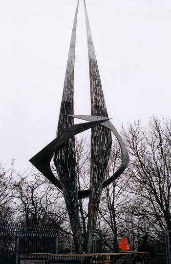 Erinnert sei in diesem Zusammenhang, dass sich seit 1967 auf dem ehemaligen Flakbunker im Humboldthain (Wedding), also im ehemaligen Westteil der Stadt, in luftiger Höhe eine Stele von Arnold Schatz erhebt, die die deutsche Teilung und den ungebrochenen Willen für ihre Überwindung symbolisiert. Zwei schmale, in der Mitte breiter werdende und sich dann nach oben verjüngende Schalen aus Aluminium werden durch einen kantigen Ring zusammengehalten. Mit dem Wiedervereinigungsdenkmal drückte der Künstler symbolhaft die Wirkung der Einschließung für das freie Berlin und die Folgen der deutschen Teilung aus. Mit dem Wachsen der blattartigen Schalen über den Ring hinaus zeigte der Künstler, dass die Hoffnung ungebrochen ist, sie irgendwann einmal zu überwinden. 22 Jahre später war das Ziel erreicht.