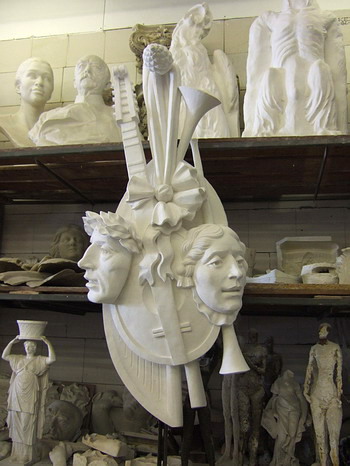 Seit dem Zweiten Weltkrieg fehlten dem Denkmal Gehänge mit Theatermasken und Musikinstrumenten, die in der Manier des 18. Jahrhunderts die Komödie und Tragödie versinnbildlichen. Nach alten Fotos hat der Weißenseer Bildhauer Andreas Hoferick diese Applikationen nachgebildet. In der Metallrestaurierungswerkstatt Haber & Brandner ebenfalls in Weißensee werden diese Stücke jetzt nachgegossen. Alle Metallteile, die erhalten gebliebenen und die nach alten Vorlagen neu geschaffenen, bekommen noch einen Belag aus hauchdünnem Blattgold. Um die Wirkung zu testen, wurden kleinere Partien einer Puttengruppe, die die Musiker mit einem Lorbeerkranz krönen, bereits mit Blattgold belegt. „Wenn das Musikerdenkmal aufgestellt sein wird und die Sonne auf den wieder weißen Marmor und den vergoldeten Metallschmuck scheint, wird das einen grandiosen Anblick ergeben“, kündigt Klaus von Krosigk an, Berlins oberster Gartendenkmalpfleger. Die Wirkung werde sich noch verdoppeln, wenn sich das Komponistendenkmal wie vor hundert Jahren in dem dann auch wiederhergestellten Goldfischteich spiegeln wird. Bisher ist er an der Entlastungsstraße nur durch einen kleinen Tümpel zu erkennen.